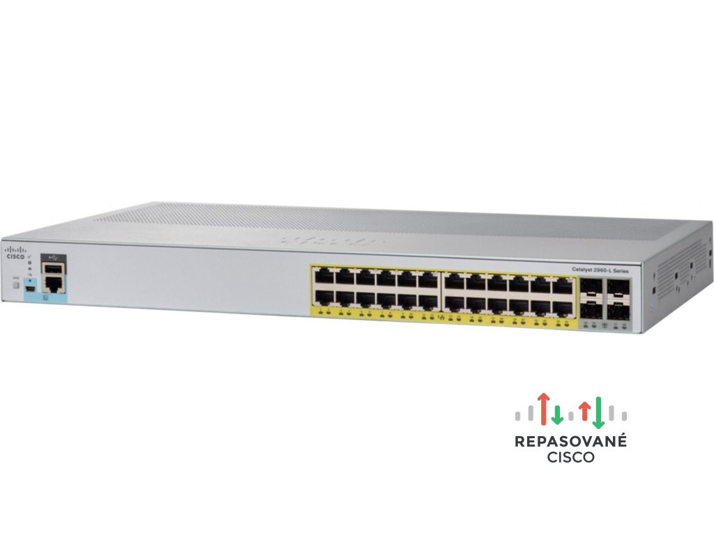 Cisco Catalyst 2960-L. Typ prepínača: Riadený, Prepínač vrstiev: L2. Typy RJ-45 Ethernet portov: Gigabit Ethernet (10/100/1000), Počet RJ-45 Ethernet portov: 24, Konzolový port: RJ-45. Plne duplexný režim. Tabuľka MAC adries: 16000 položky, Limit prepínania: 56 Gbit/s. Sieťový štandard: IEEE 802.1D, IEEE 802.1ab, IEEE 802.1af, IEEE 802.1p, IEEE 802.1s, IEEE 802.1w, IEEE 802.1x, IEEE.... Podpora napájania cez Ethernet (PoE). Inštalácia do Racku, Formát: 1U