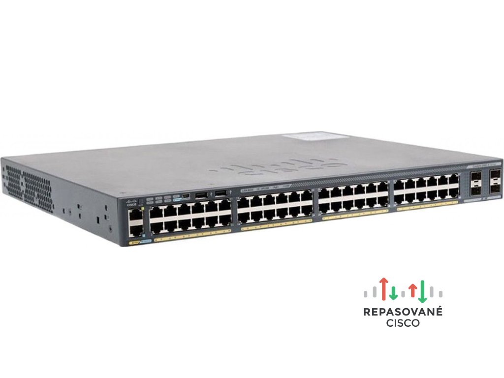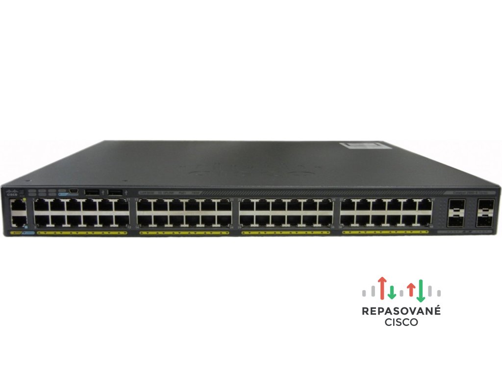 Cisco Catalyst WS-C2960X-48FPS-L. Typ prepínača: Riadený, Prepínač vrstiev: L2/L3. Typy RJ-45 Ethernet portov: Gigabit Ethernet (10/100/1000), Počet RJ-45 Ethernet portov: 48, Počet USB 2.0 portov: 2, Konzolový port: RJ-45. Plne duplexný režim. Tabuľka MAC adries: 16000 položky, Limit prepínania: 216 Gbit/s. Sieťový štandard: IEEE 802.1ab, IEEE 802.1D, IEEE 802.1p, IEEE 802.1Q, IEEE 802.1s, IEEE 802.1w, IEEE 802.1x, IEEE.... Podpora napájania cez Ethernet (PoE). Inštalácia do Racku