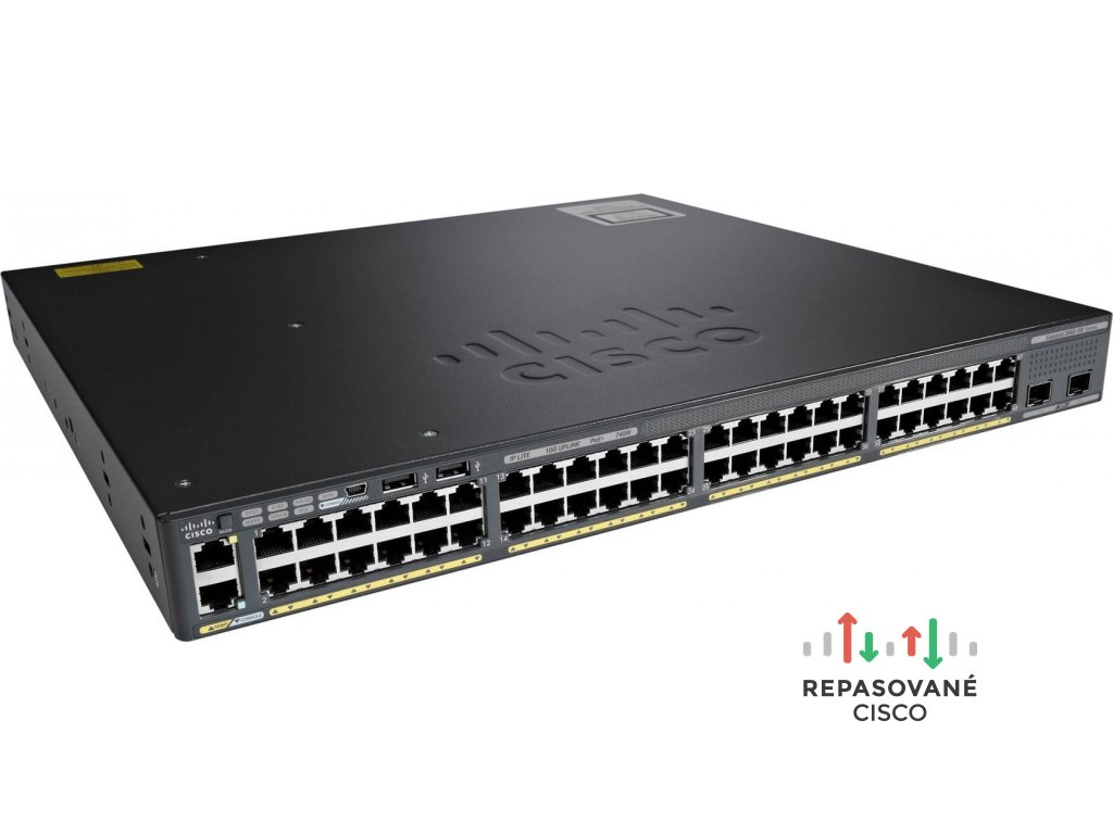 Cisco Catalyst WS-C2960X-48LPD-L. Typ prepínača: Riadený, Prepínač vrstiev: L2. Typy RJ-45 Ethernet portov: Gigabit Ethernet (10/100/1000), Počet RJ-45 Ethernet portov: 48, Počet USB 2.0 portov: 2, Konzolový port: RJ-45. Plne duplexný režim. Tabuľka MAC adries: 16000 položky, Limit prepínania: 216 Gbit/s. Sieťový štandard: IEEE 802.1ab, IEEE 802.1D, IEEE 802.1p, IEEE 802.1Q, IEEE 802.1s, IEEE 802.1w, IEEE 802.1x, IEEE.... Podpora napájania cez Ethernet (PoE). Inštalácia do Racku