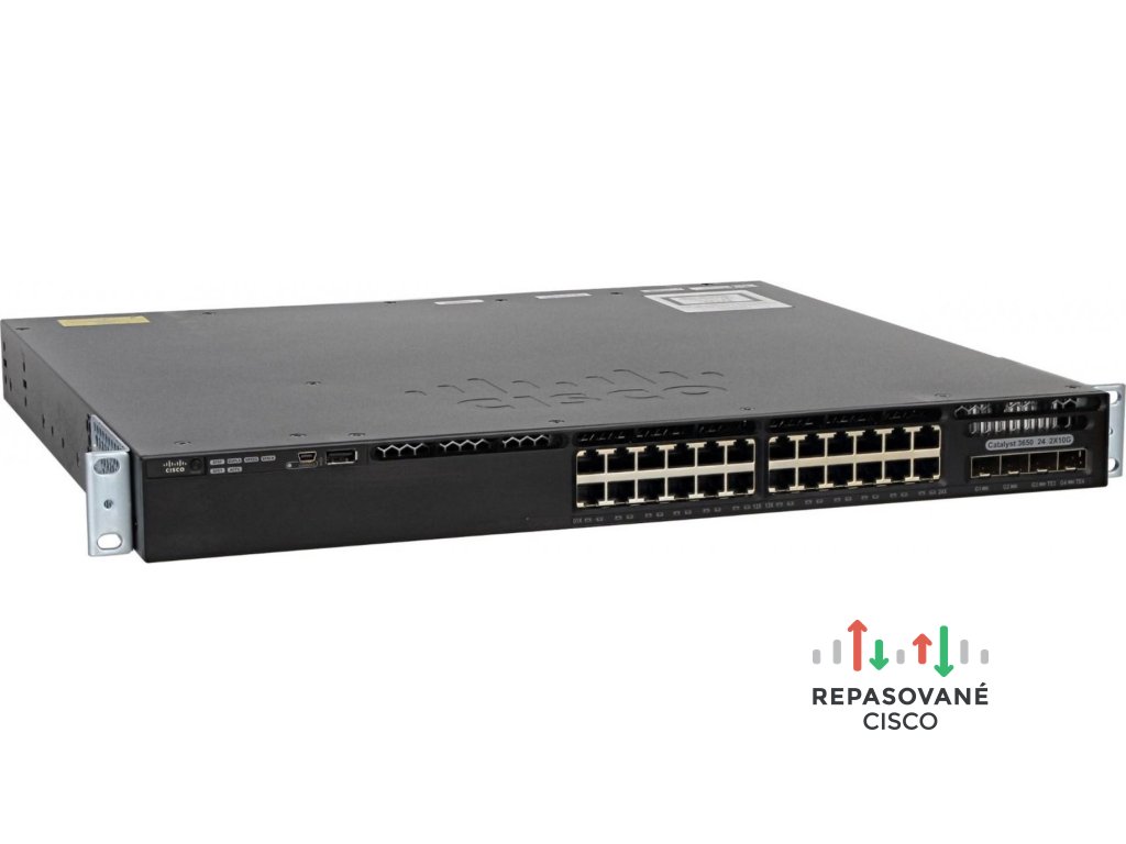 Cisco Catalyst WS-C3650-24TD-S. Typ prepínača: Riadený, Prepínač vrstiev: L3. Typy RJ-45 Ethernet portov: Gigabit Ethernet (10/100/1000), Počet RJ-45 Ethernet portov: 24. Plne duplexný režim. Tabuľka MAC adries: 32000 položky, Limit prepínania: 254 Gbit/s. Sieťový štandard: IEEE 802.1D, IEEE 802.1p, IEEE 802.1Q, IEEE 802.1s, IEEE 802.1w, IEEE 802.1x, IEEE 802.3, IEEE.... Inštalácia do Racku, Formát: 1U